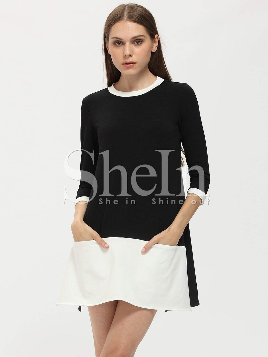 Black Crew Neck Contrast Flounce Dress Discounted at only: US$ 17.69