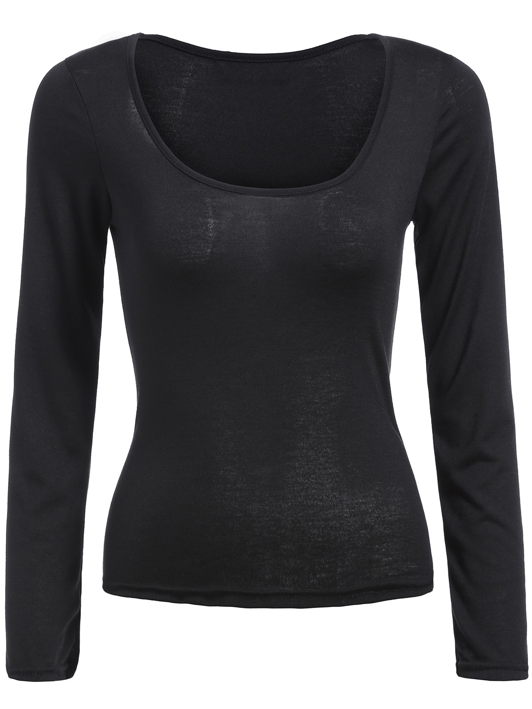Black Scoop Neck Long Sleeve Slim T-Shirt Discounted at only: US$ 10.99