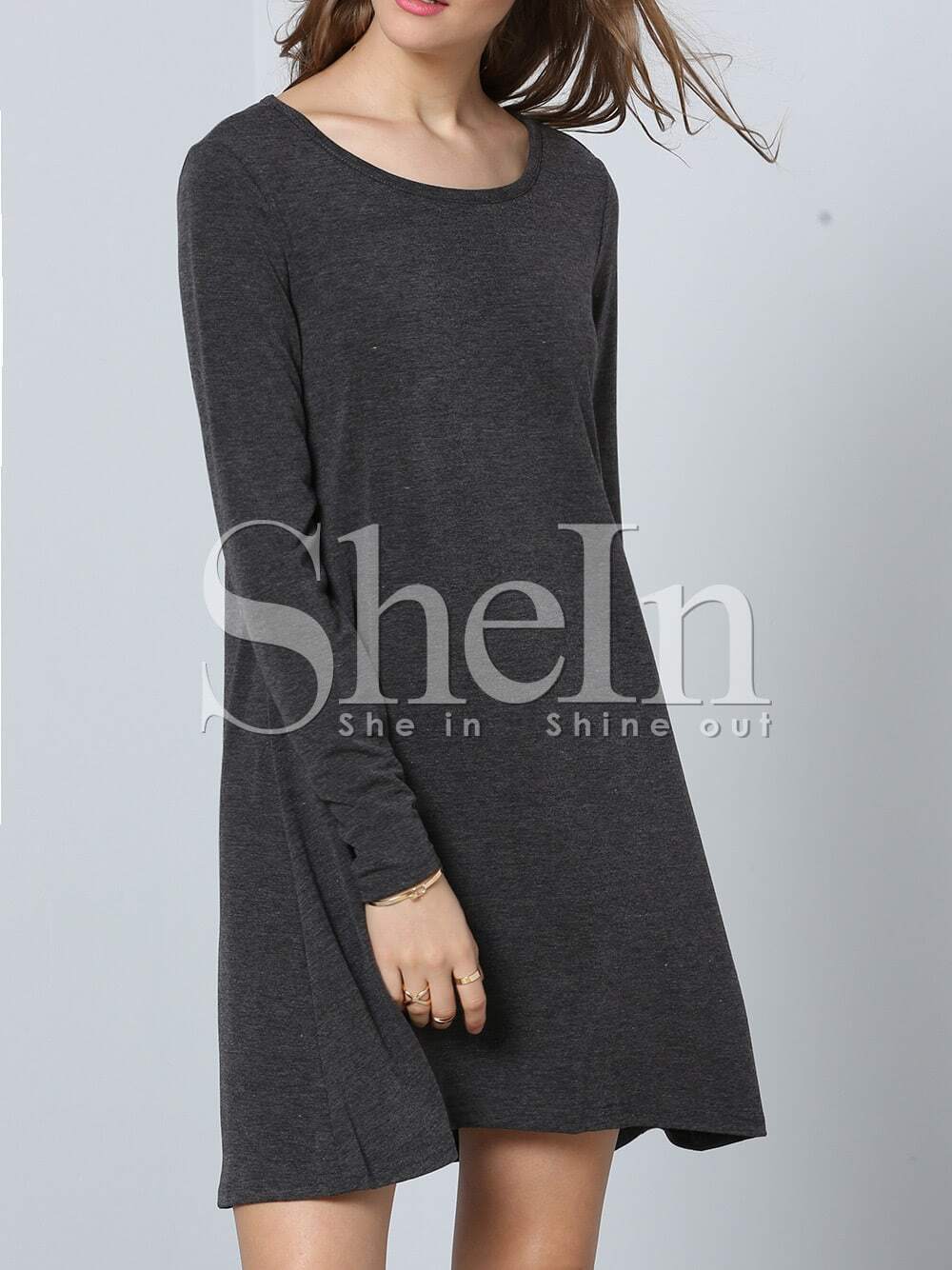 Grey Round Neck Casual Dress Discounted at only: US$ 19.22