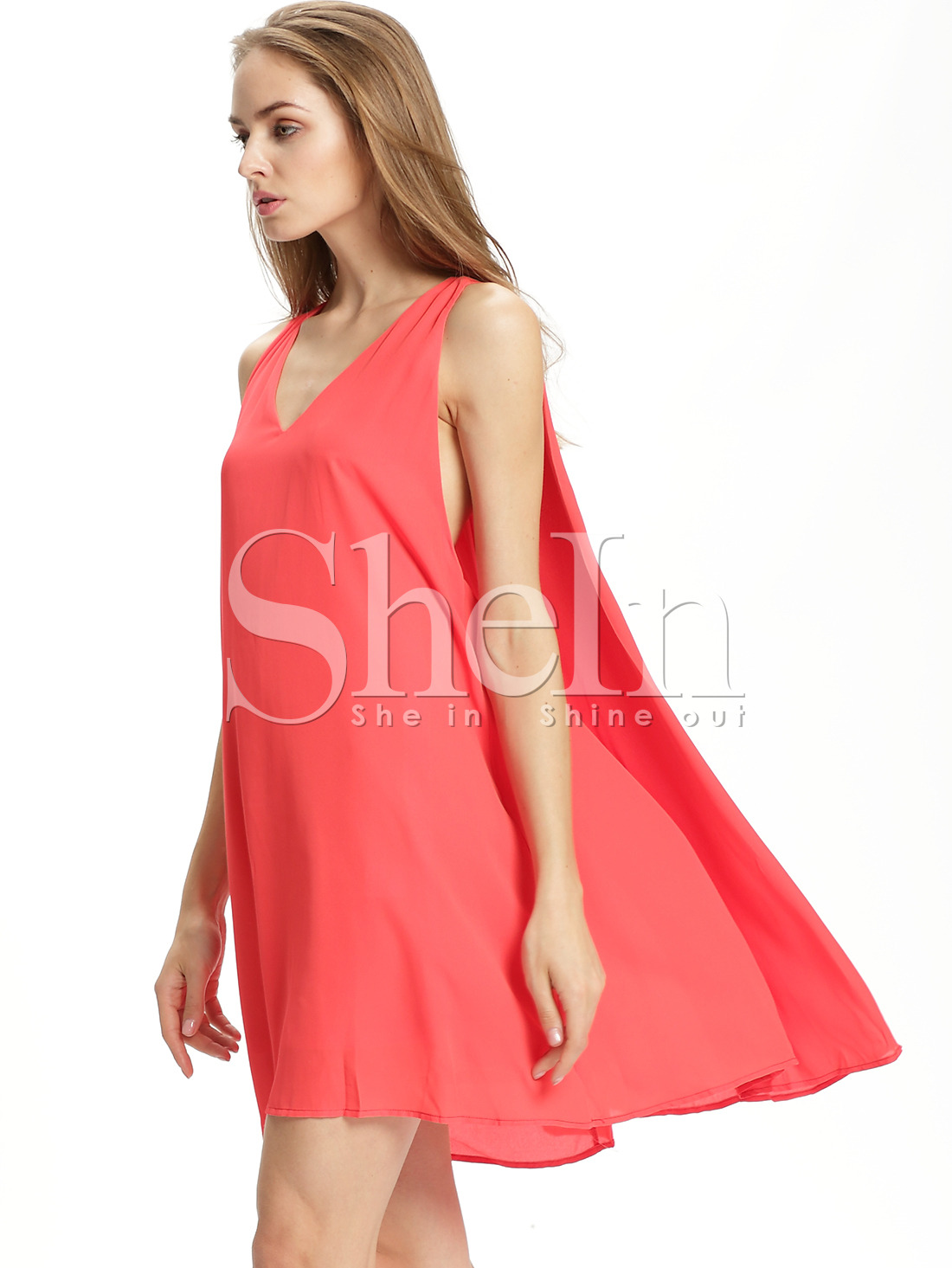 Red Sleeveless V Neck Dress Discounted at only: US$ 7.99