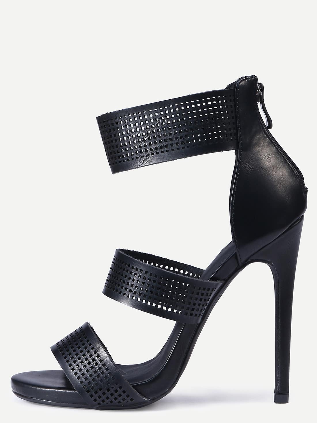 Black Zipper PU High Heeled Sandals Discounted at only: US$ 31.99