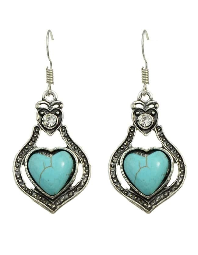 Turquoise Heart Shape Drop Earrings Discounted at only: US$ 4.99