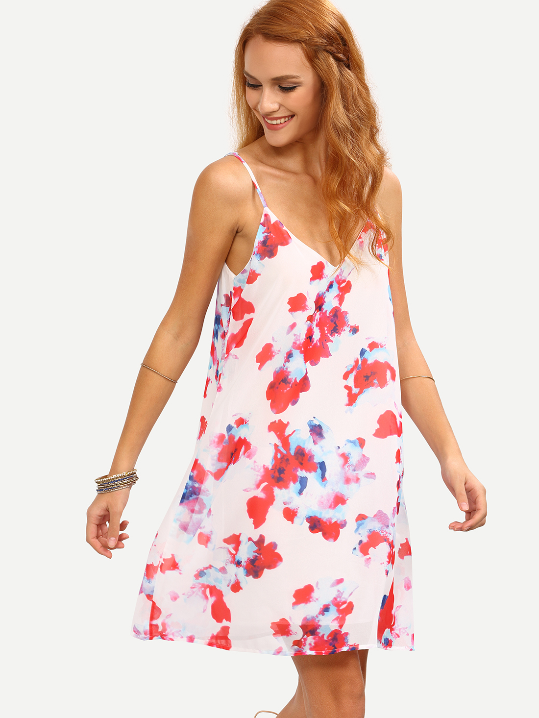 White Florals Chiffon Shift Cami Dress Discounted at only: US$ 19.99