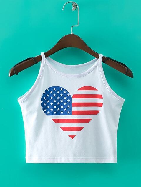 White Heart Flag Print Straps Tank Top Discounted at only: US$ 9.99