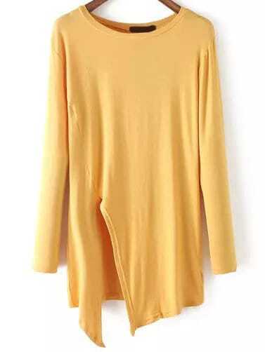 Yellow Round Neck Split Loose T-Shirt Discounted at only: US$ 17.18