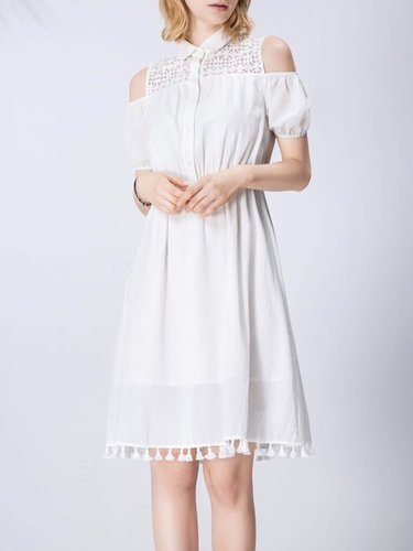 Beige A-line Sweet Cutout Plain Midi Dress Discounted at only: US$ 105.00
