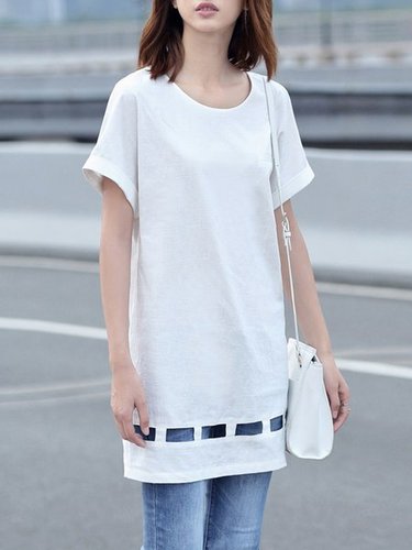 White Short Sleeve H-line Cutout Tunic Discounted at only: US$ 49.00