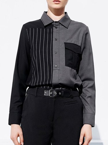 Work Shirt Collar Long Sleeve Blouse Discounted at only: US$ 78.00