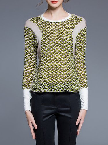 Yellow Work Geometric Long Sleeve Polyester Blouse Discounted at only: US$ 43.00
