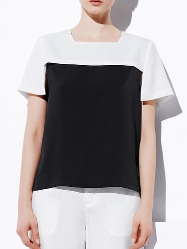 Black Color-block Crew Neck Polyester Simple T-Shirt Discounted at only: US$ 78.00