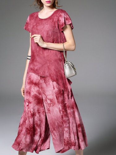 Elegant Crew Neck Frill Sleeve Two Piece Jumpsuit Discounted at only: US$ 74.00