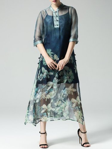 Floral Slit 3/4 Sleeve Vintage Two Piece Midi Dress Discounted at only: US$ 167.00