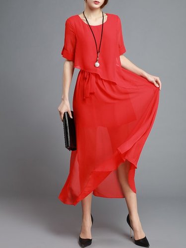 Plain Swing Crew Neck Casual Short Sleeve Midi Dress Discounted at only: US$ 89.00