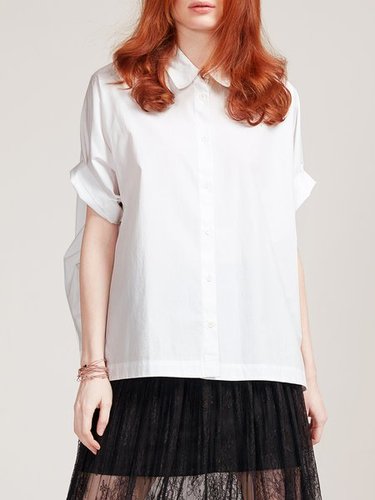 White High Low Short Sleeve Shirt Collar Blouse Discounted at only: US$ 81.00